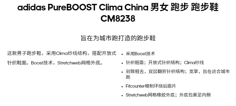 阿迪達(dá)斯 PureBOOST Clima China 男女 跑步鞋 CM8238
