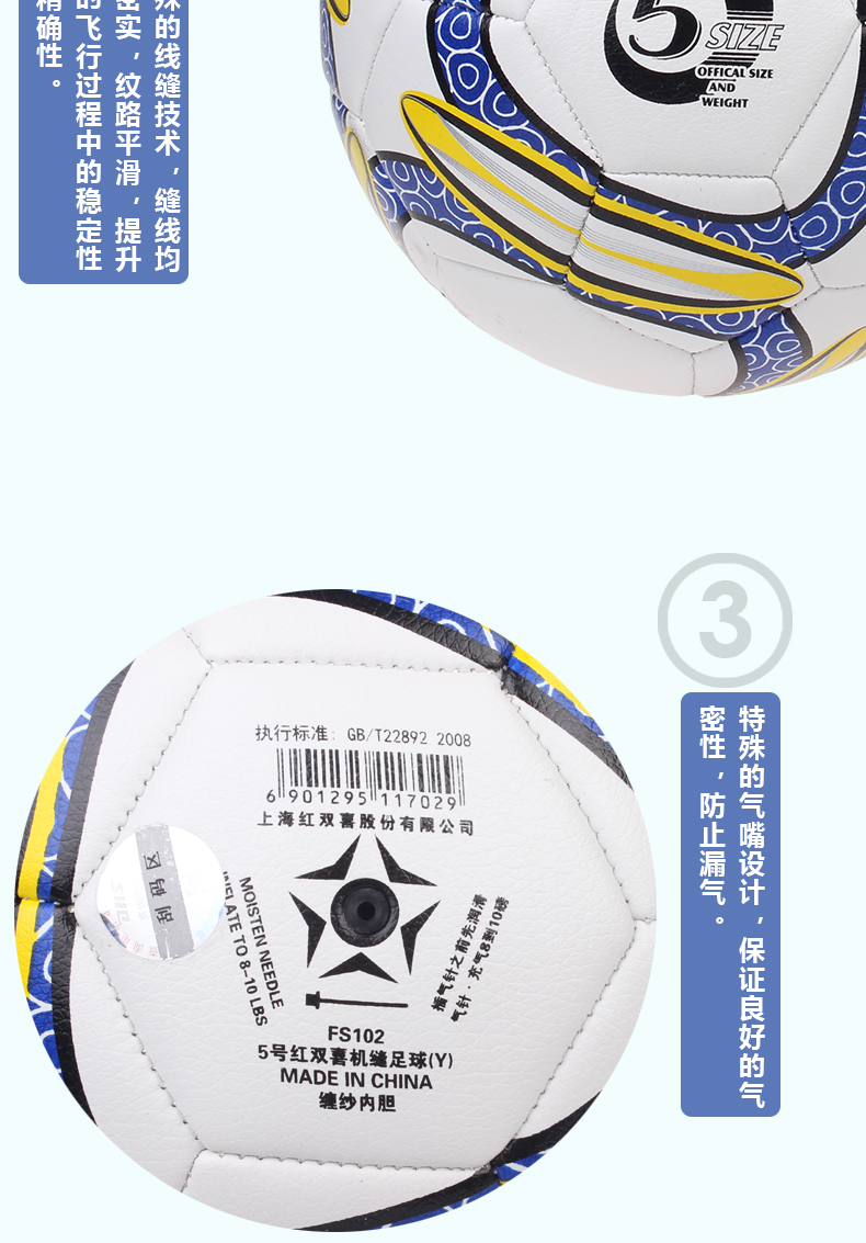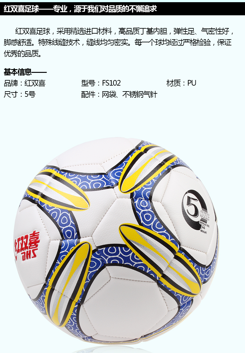 紅雙喜足球FS102 牛皮紋5號標準十一人制校園足球標準足球