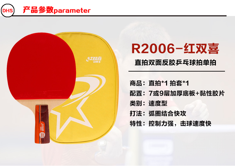 紅雙喜(DHS) R2002-R2003-R2006-R2007二星乒乓球拍